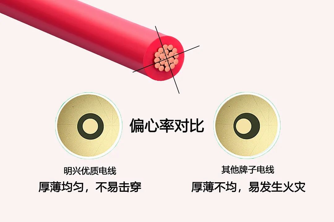 時代在變遷,線纜產(chǎn)品也在不斷創(chuàng)新,明興電纜也在往一個更高質(zhì)量層次出發(fā),實現(xiàn)”芯“升級。你知道比國標(biāo)粗是什么概念嗎?現(xiàn)如今人們的生活邁入小康,家中大多裝了空調(diào),這相當(dāng)于花著相同的電費能比別人多開一個小時的空調(diào),而且發(fā)熱低、電流穩(wěn)定,還能更好減少電器損壞,增加使用壽命。